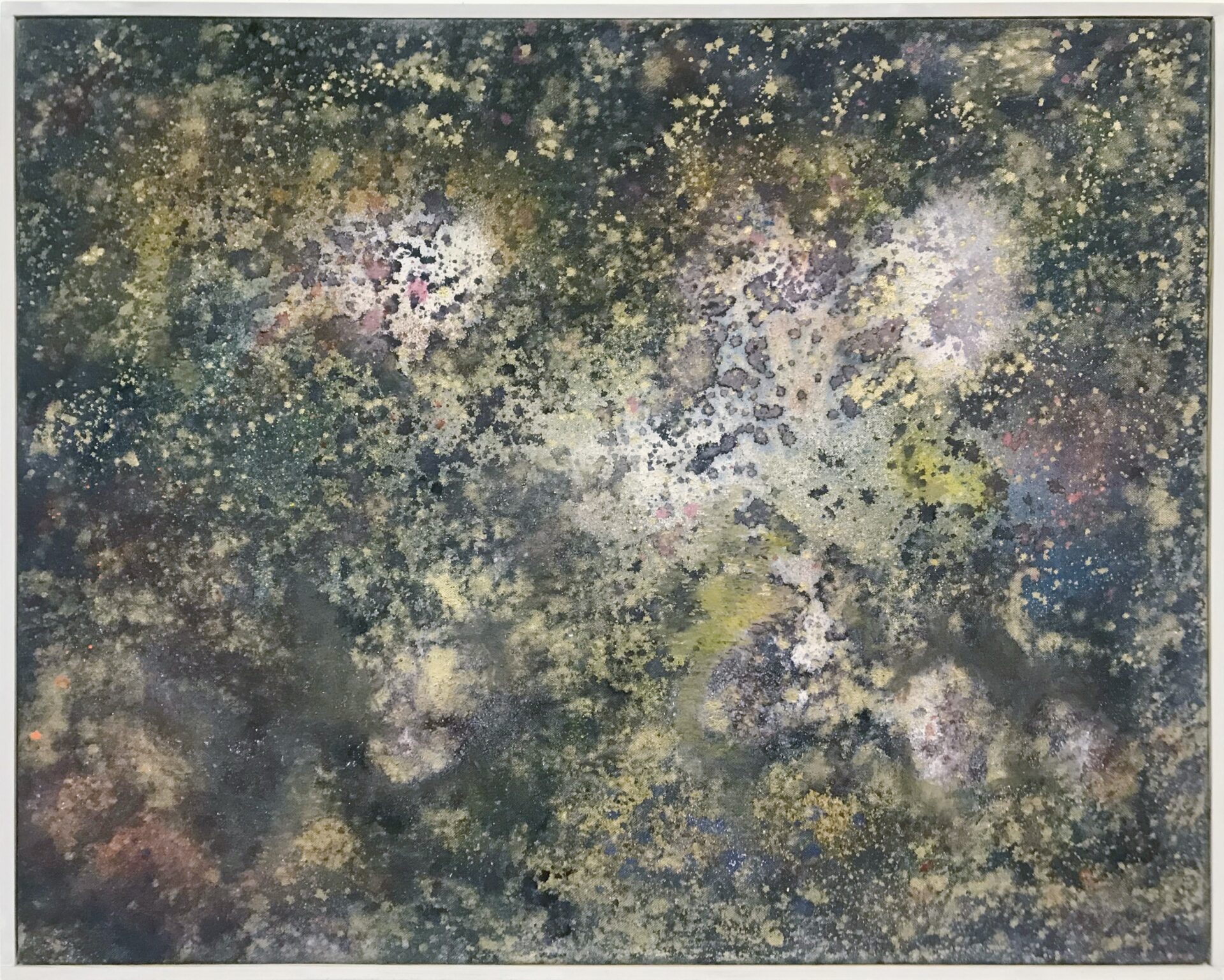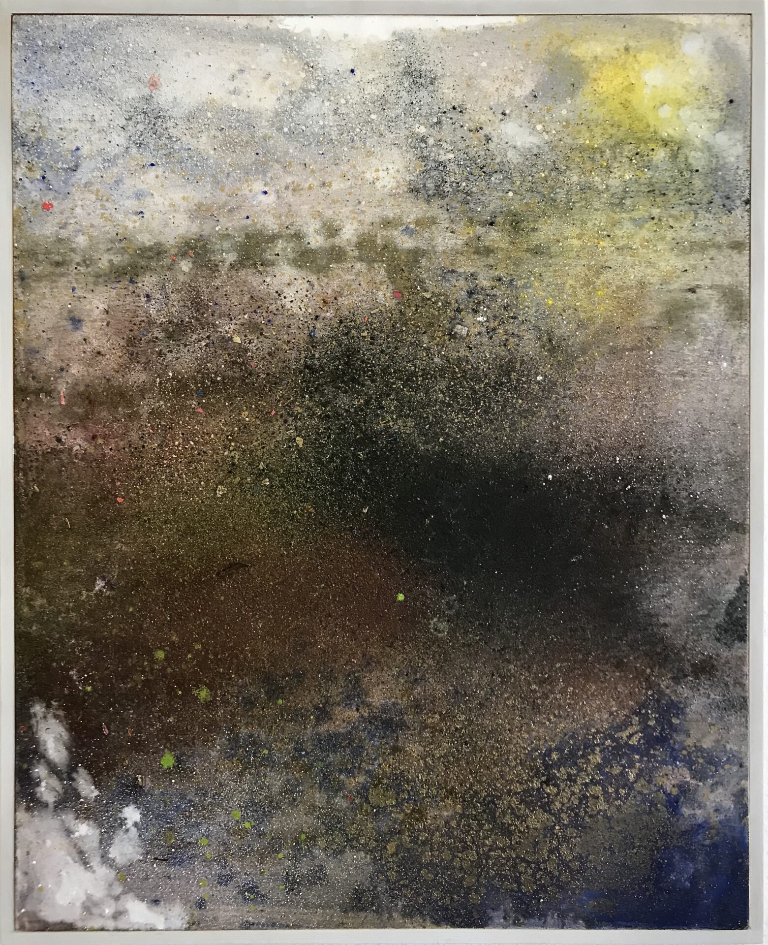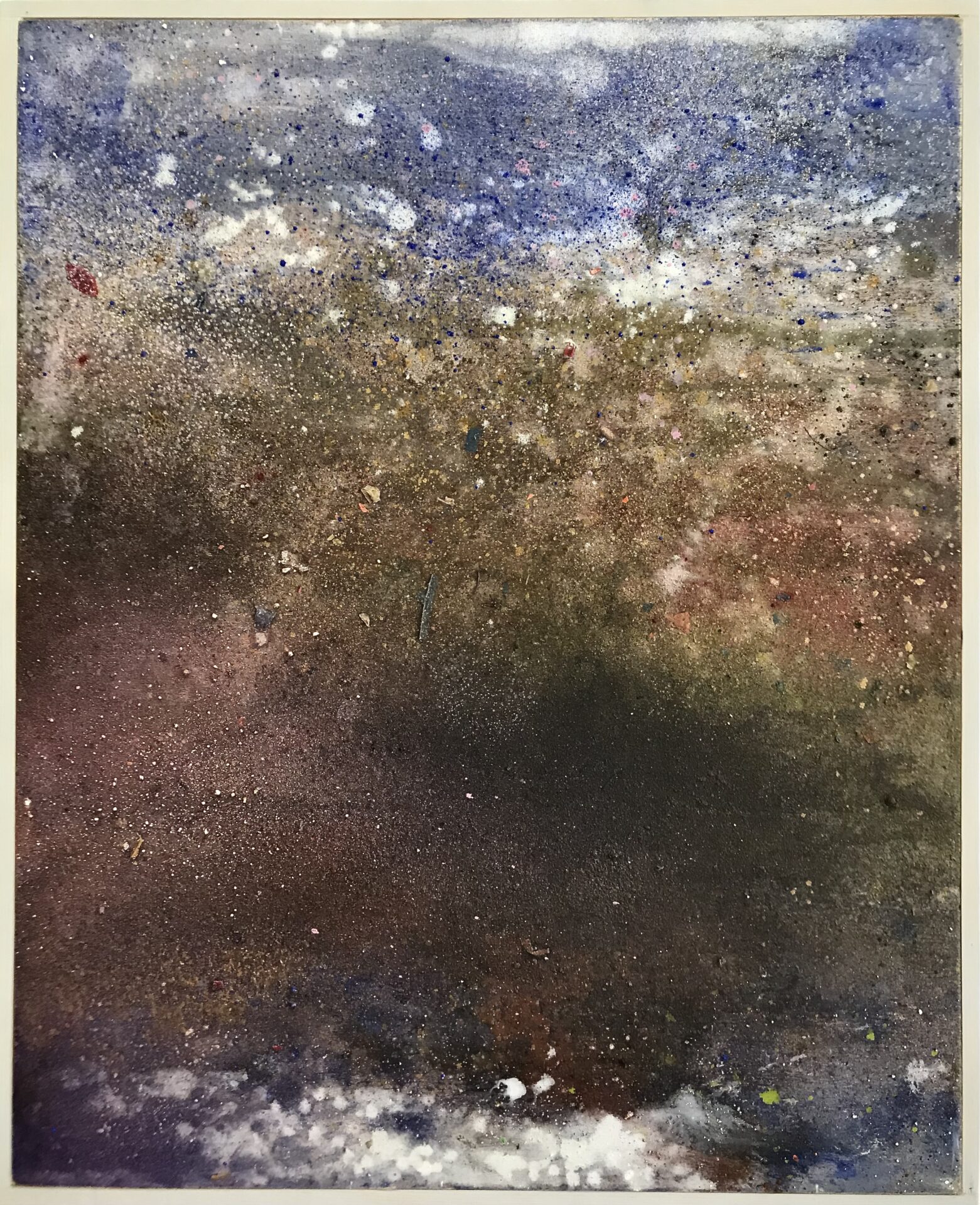 2024, acrylic binder, pigments, charcoal and spray paint on panel.