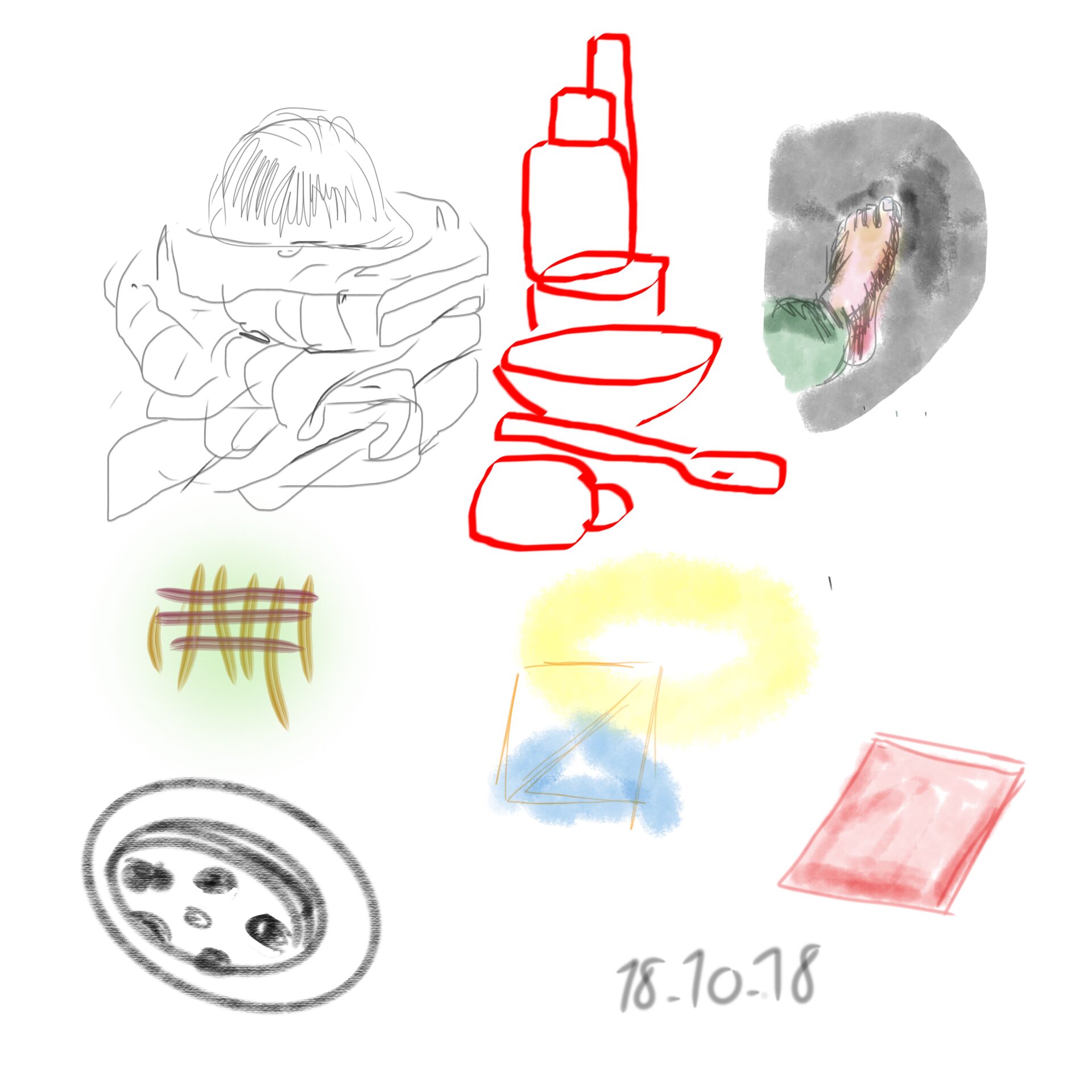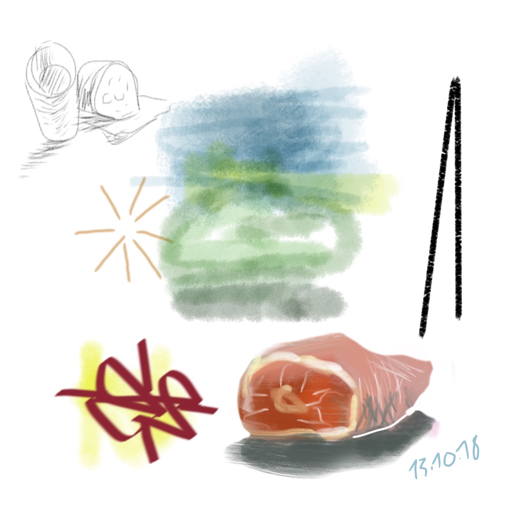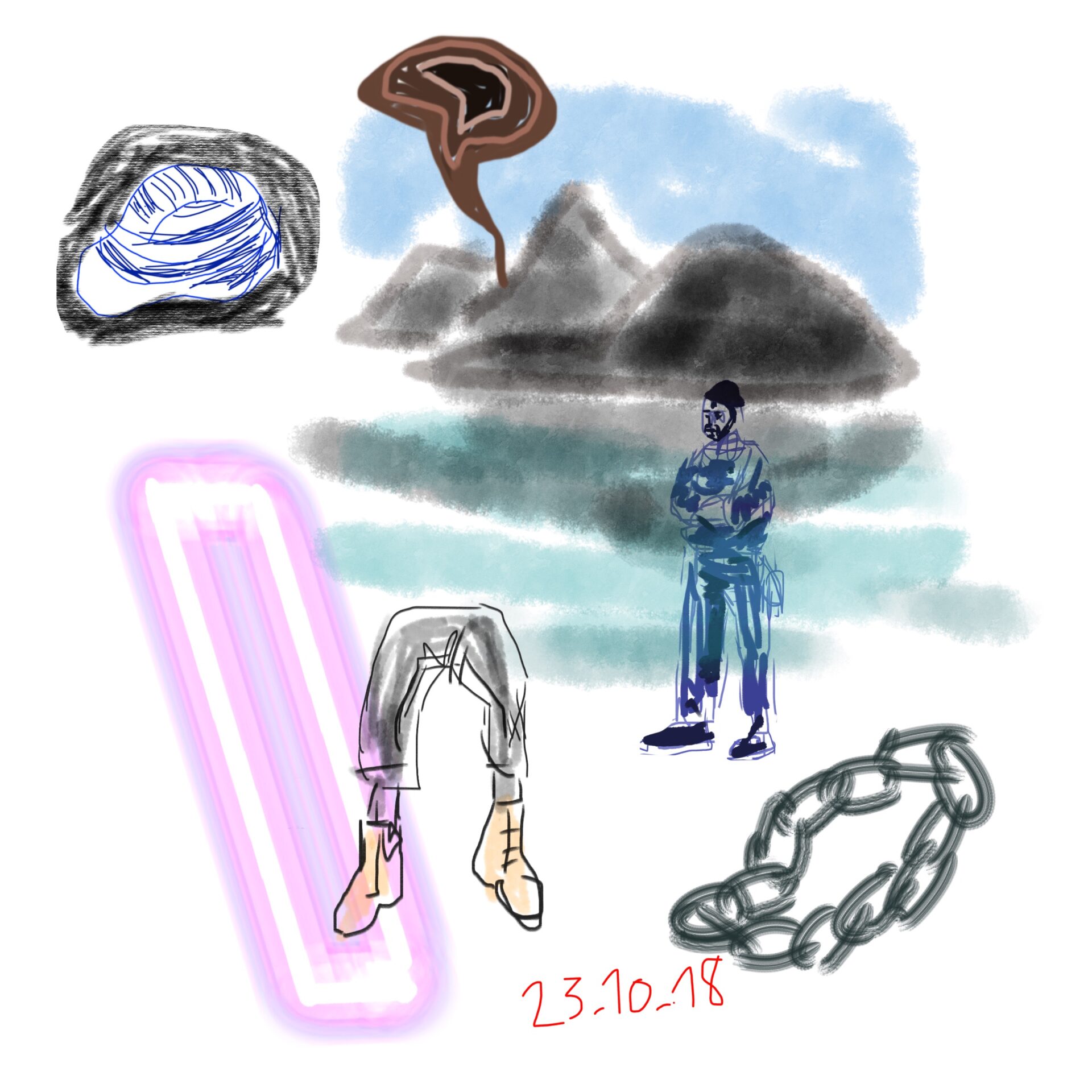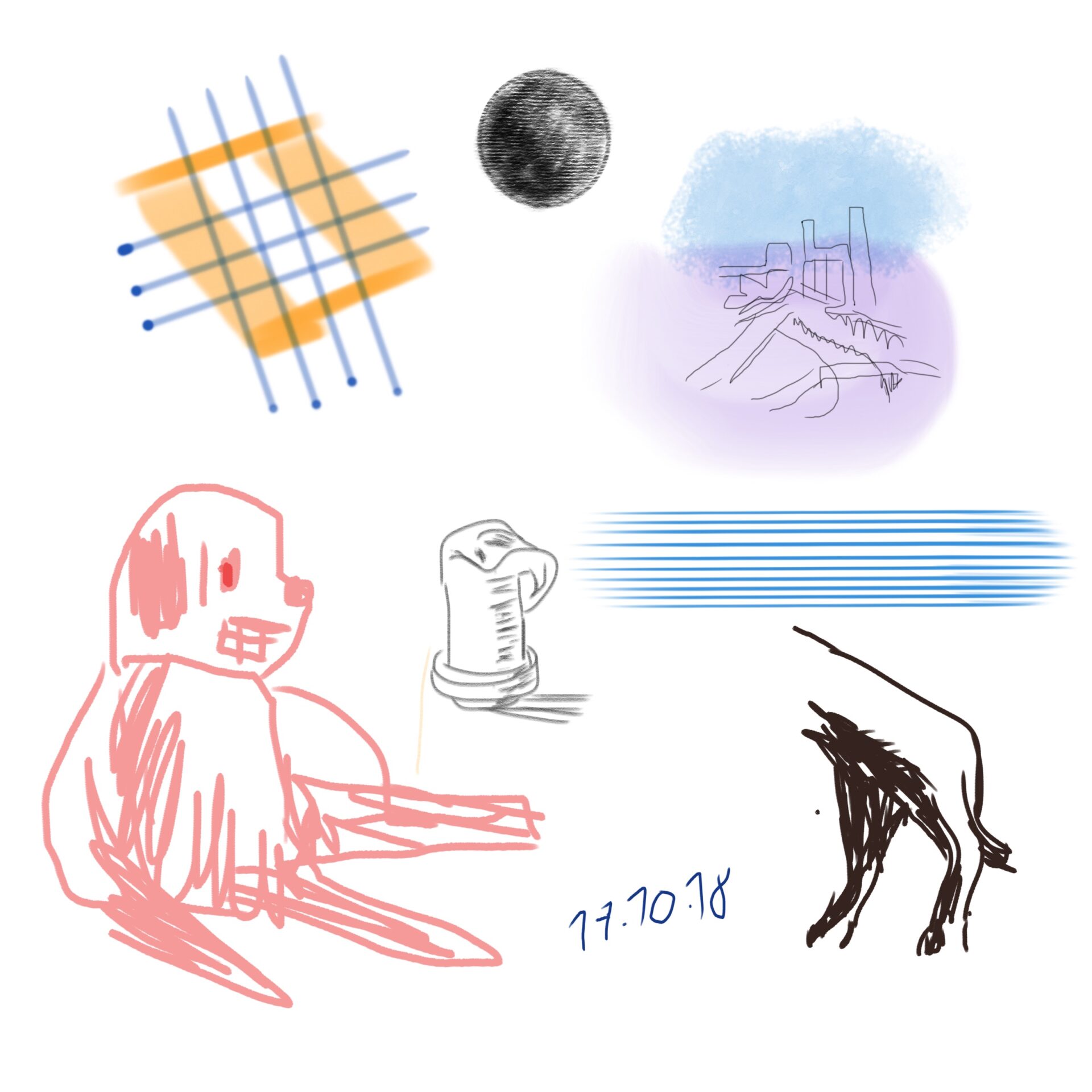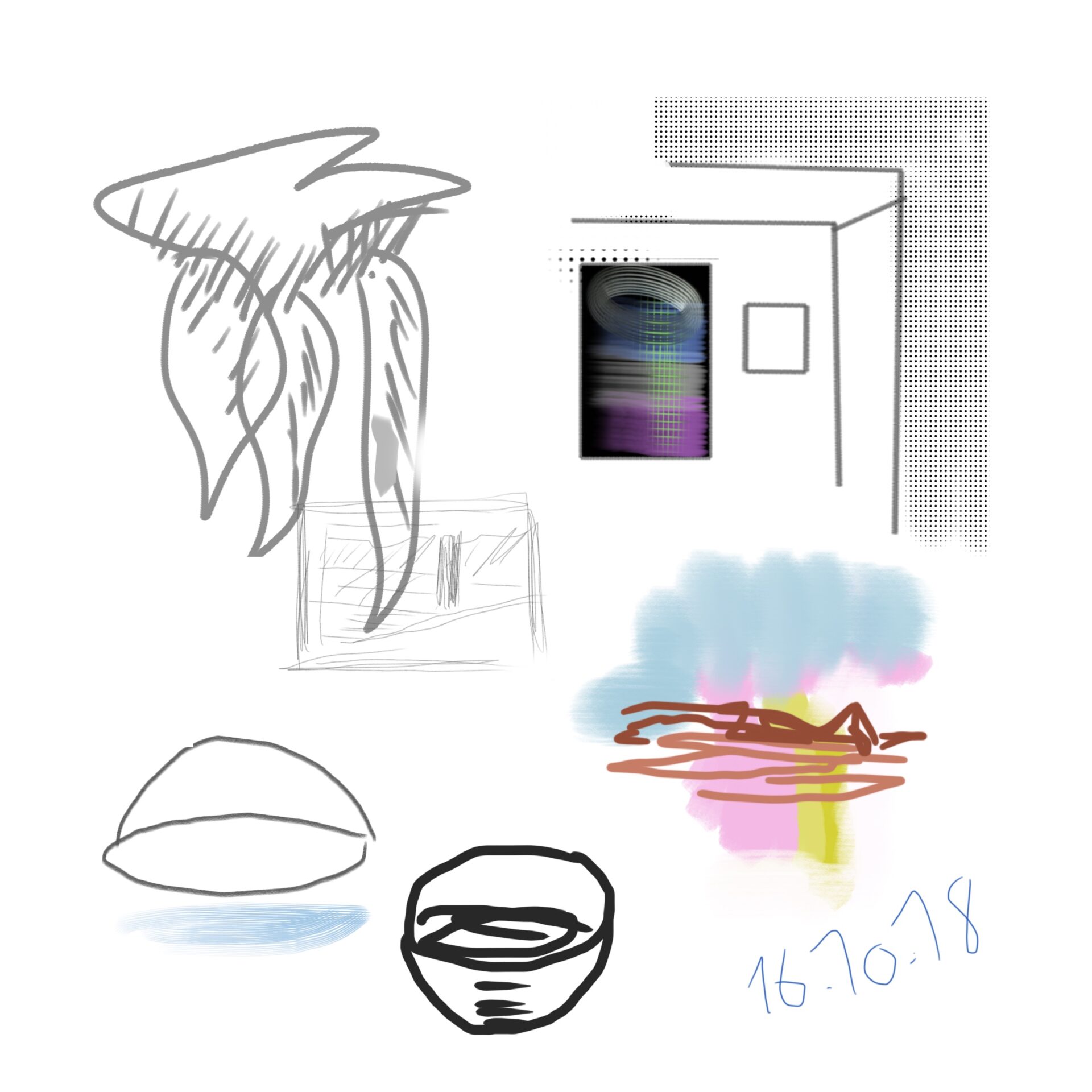 croquis gribouillages, idées du jour d’Octobre ou Novembre 2018 et notamment en route vers Sarajevo pour assister à Beyond Good And Evil lors du festival de Jazz, sur écran tactile 4 pouces avec l’application sketchbook