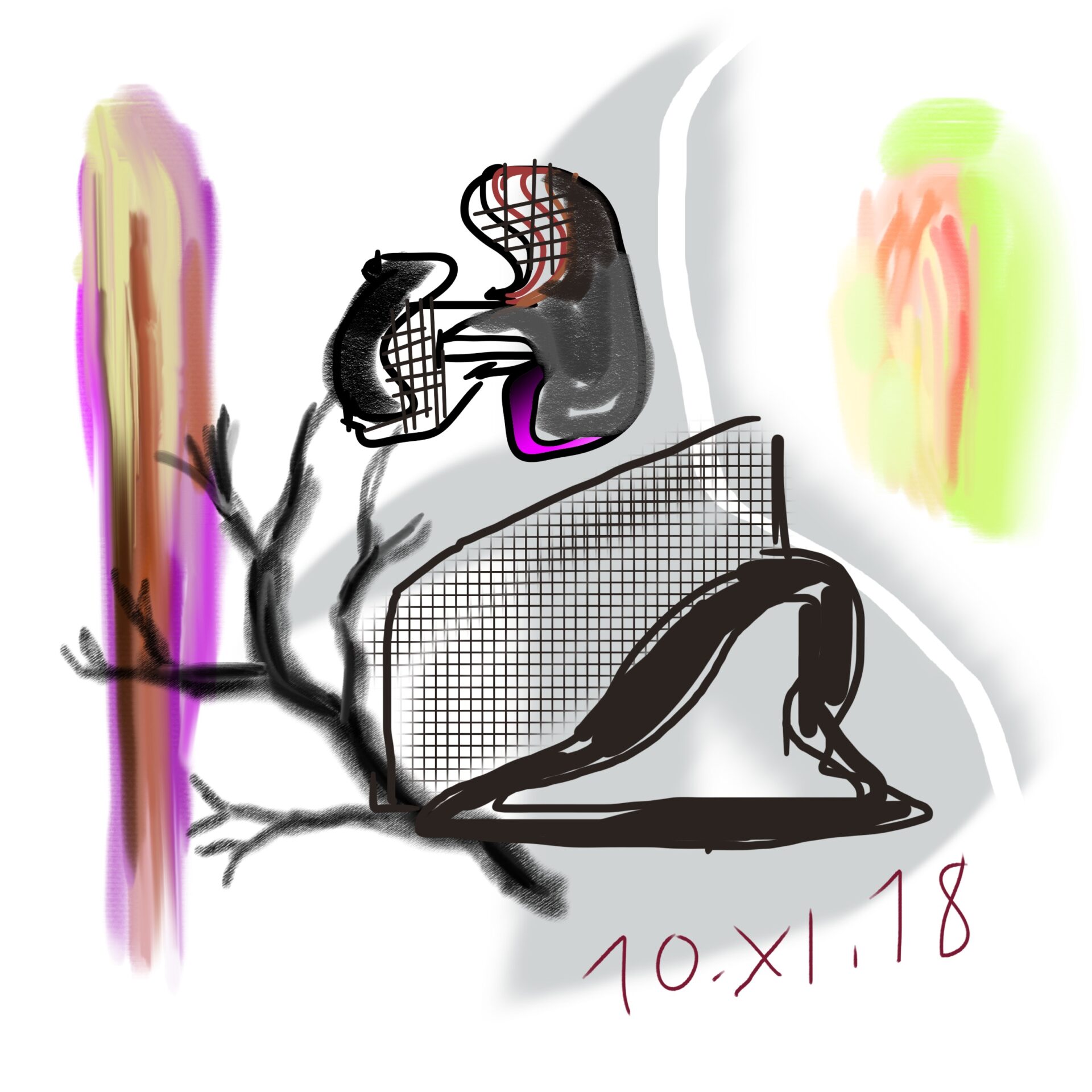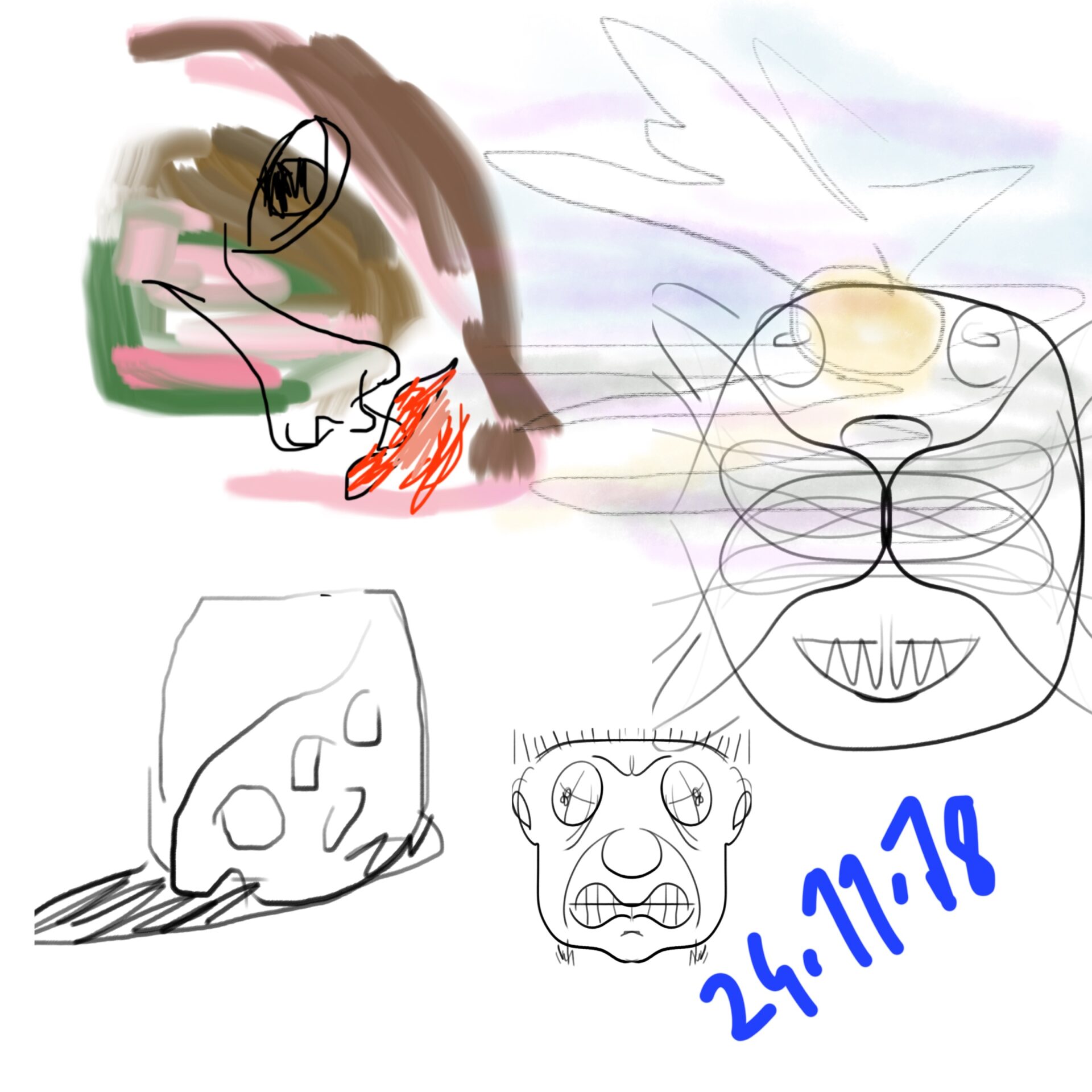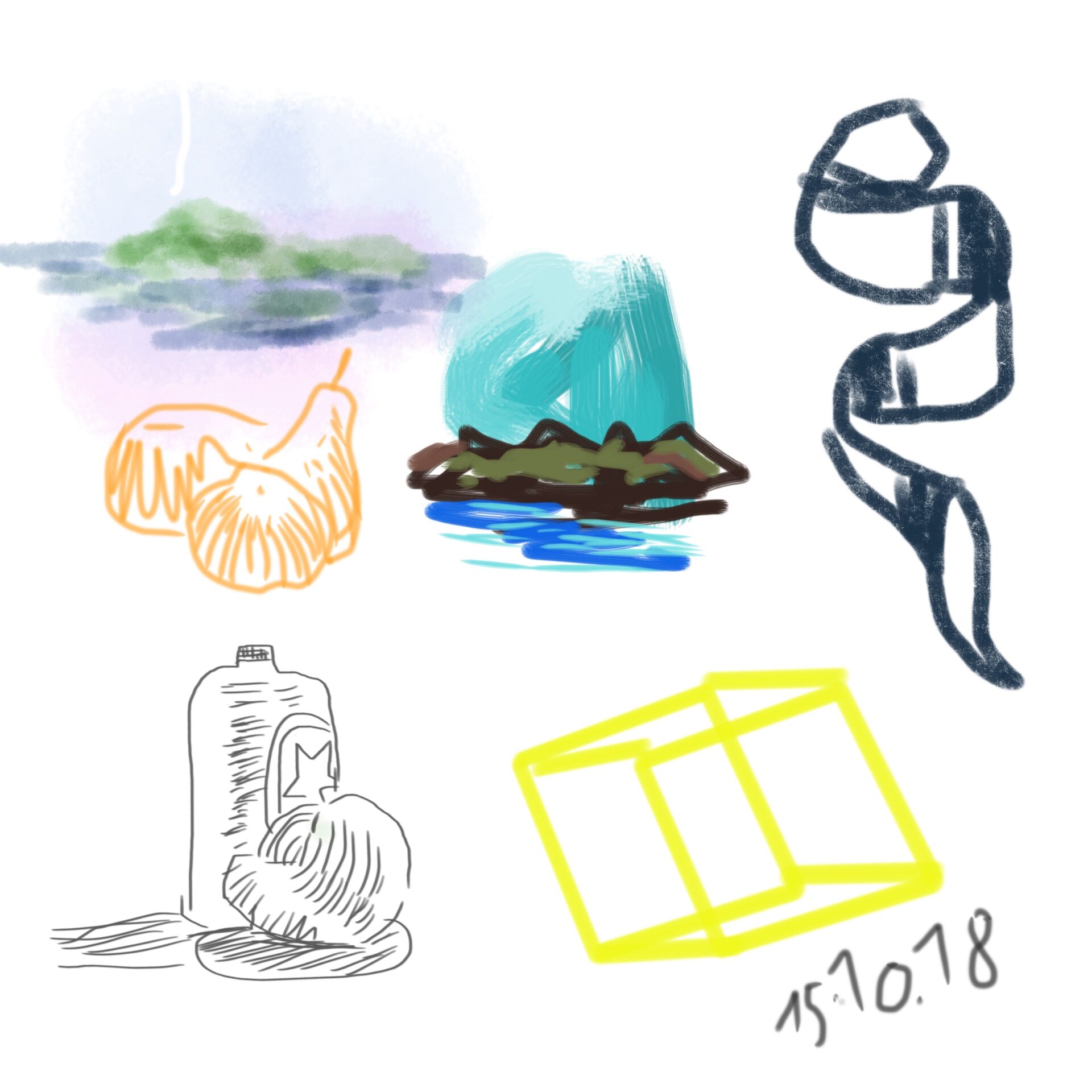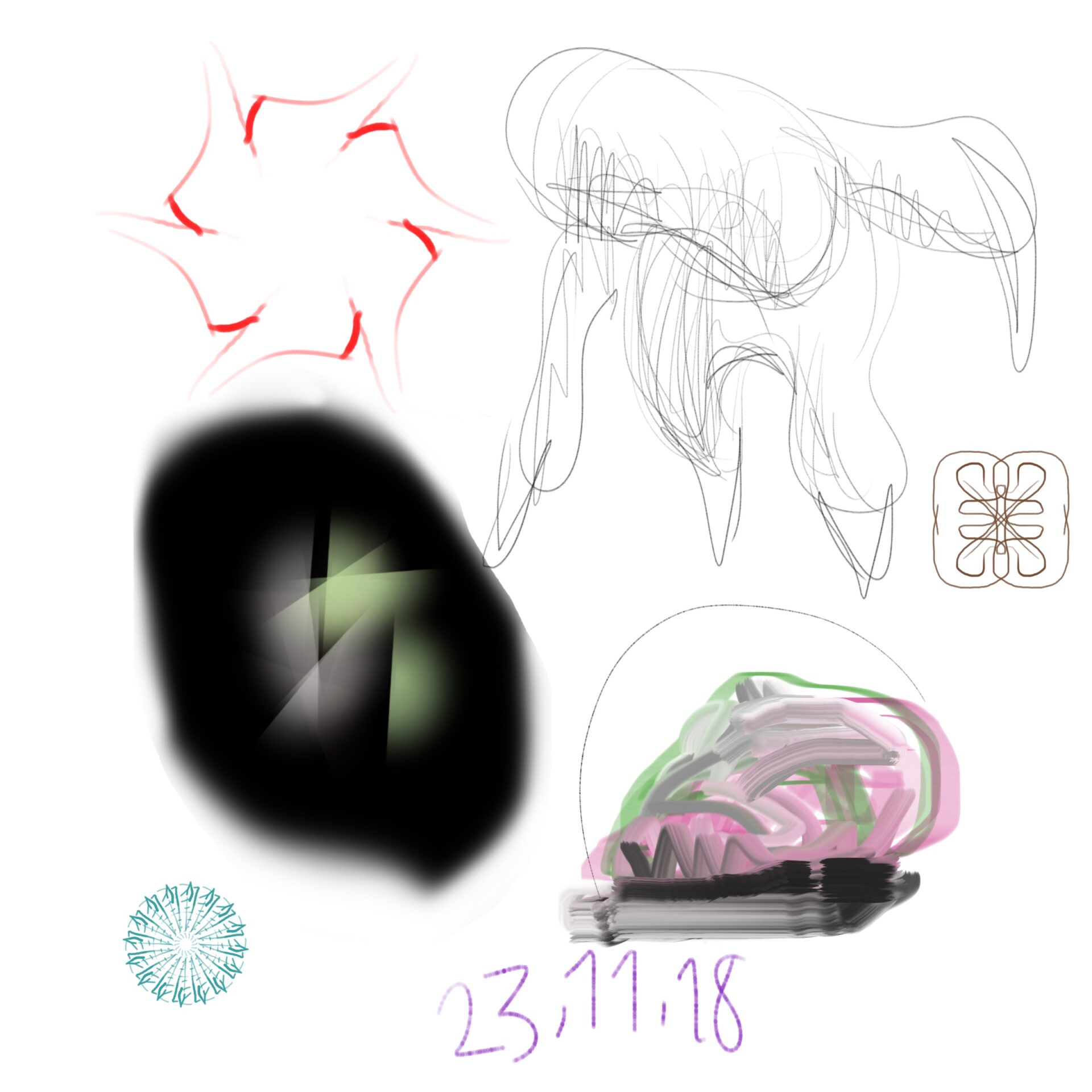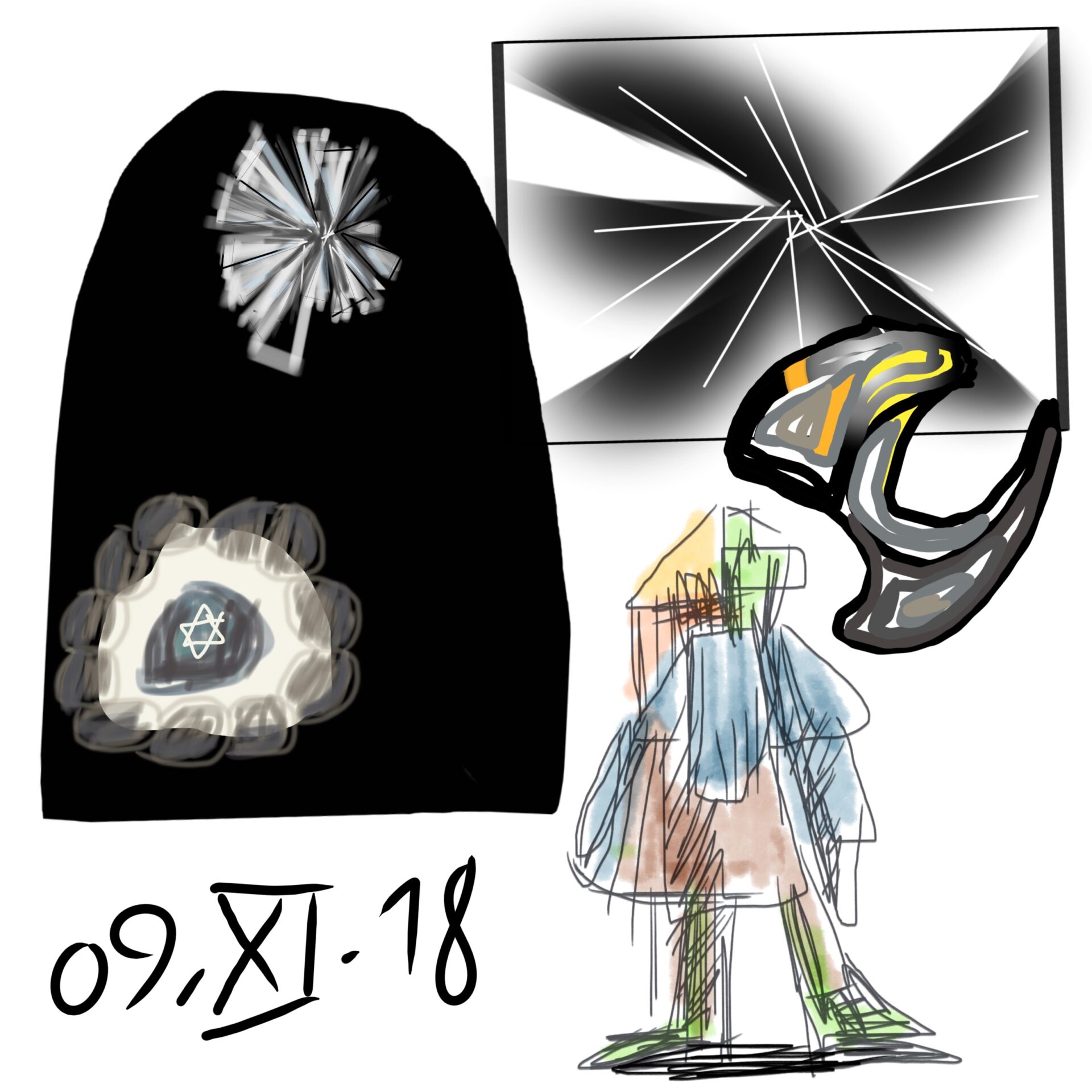croquis gribouillages, idées du jour d’Octobre ou Novembre 2018 et notamment en route vers Sarajevo pour assister à Beyond Good And Evil lors du festival de Jazz, sur écran tactile 4 pouces avec l’application sketchbook