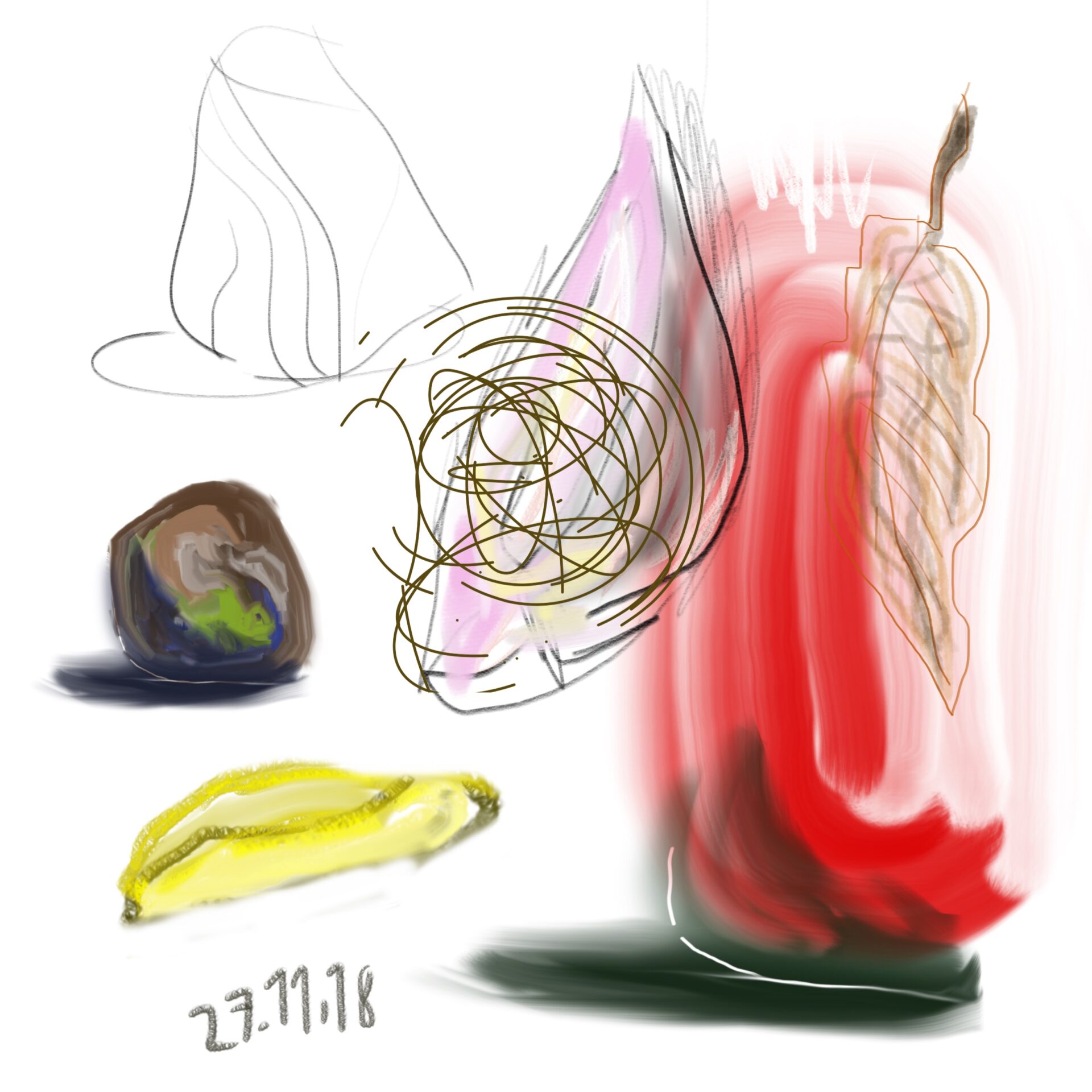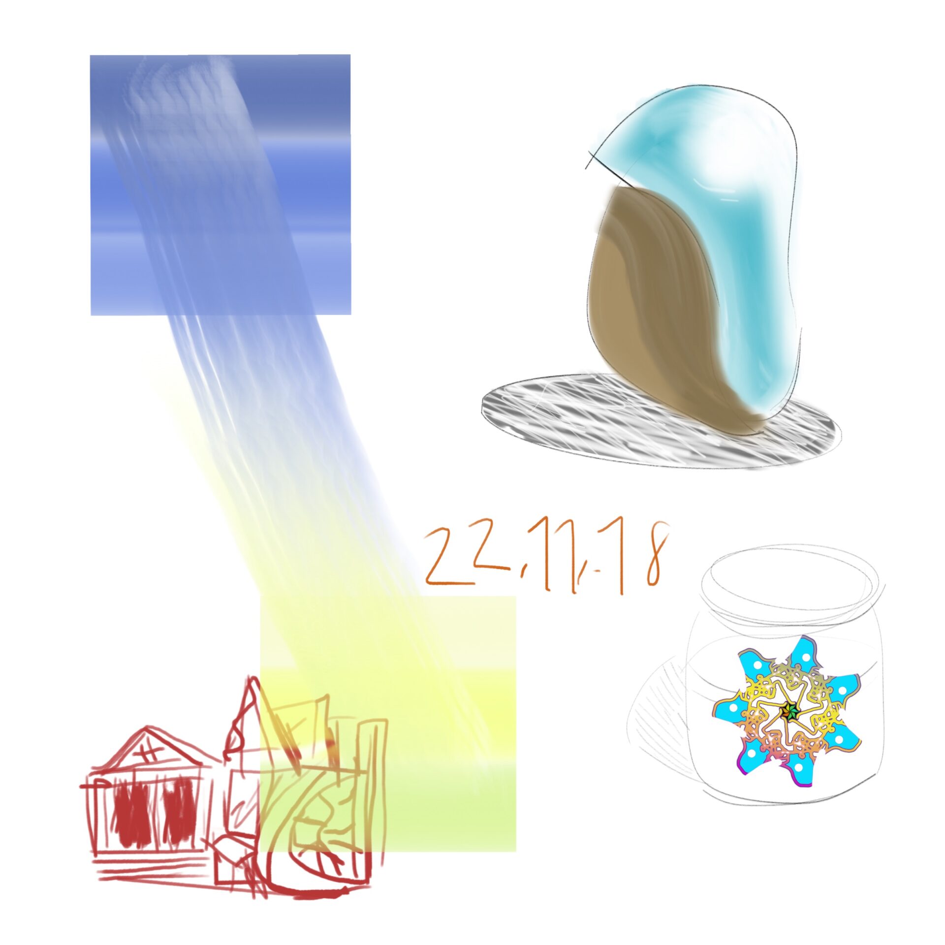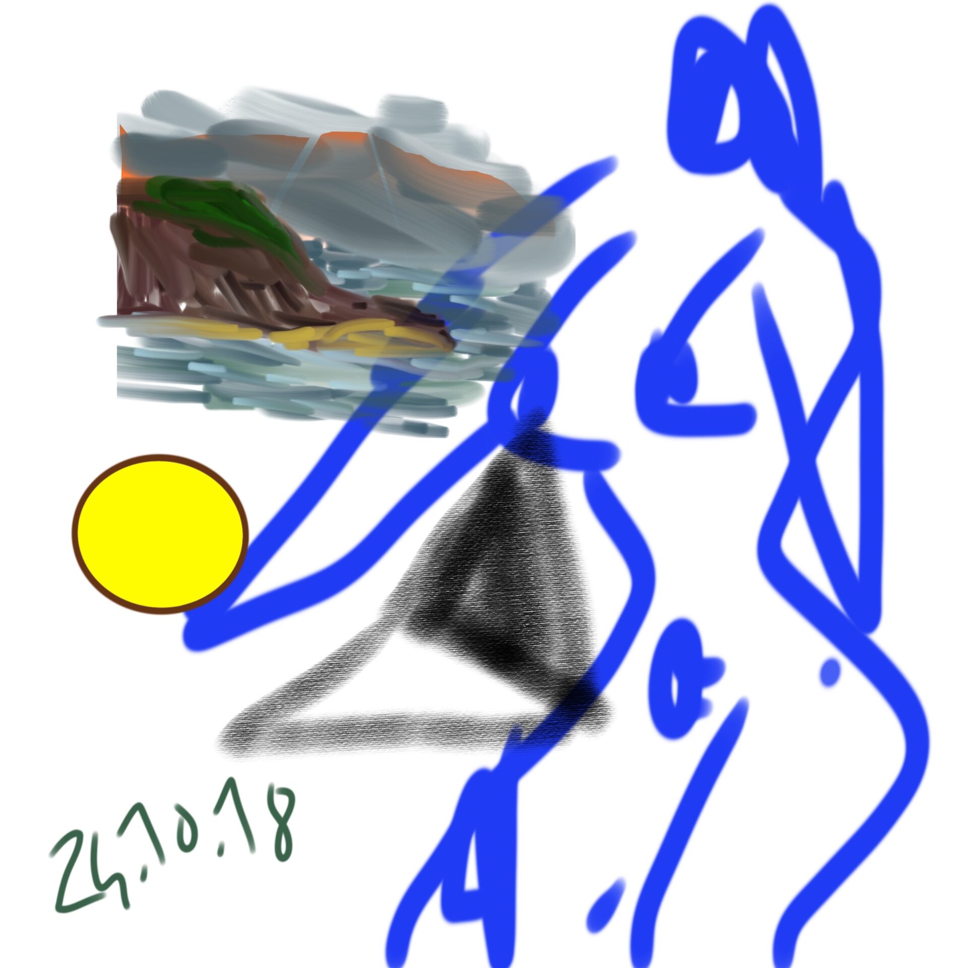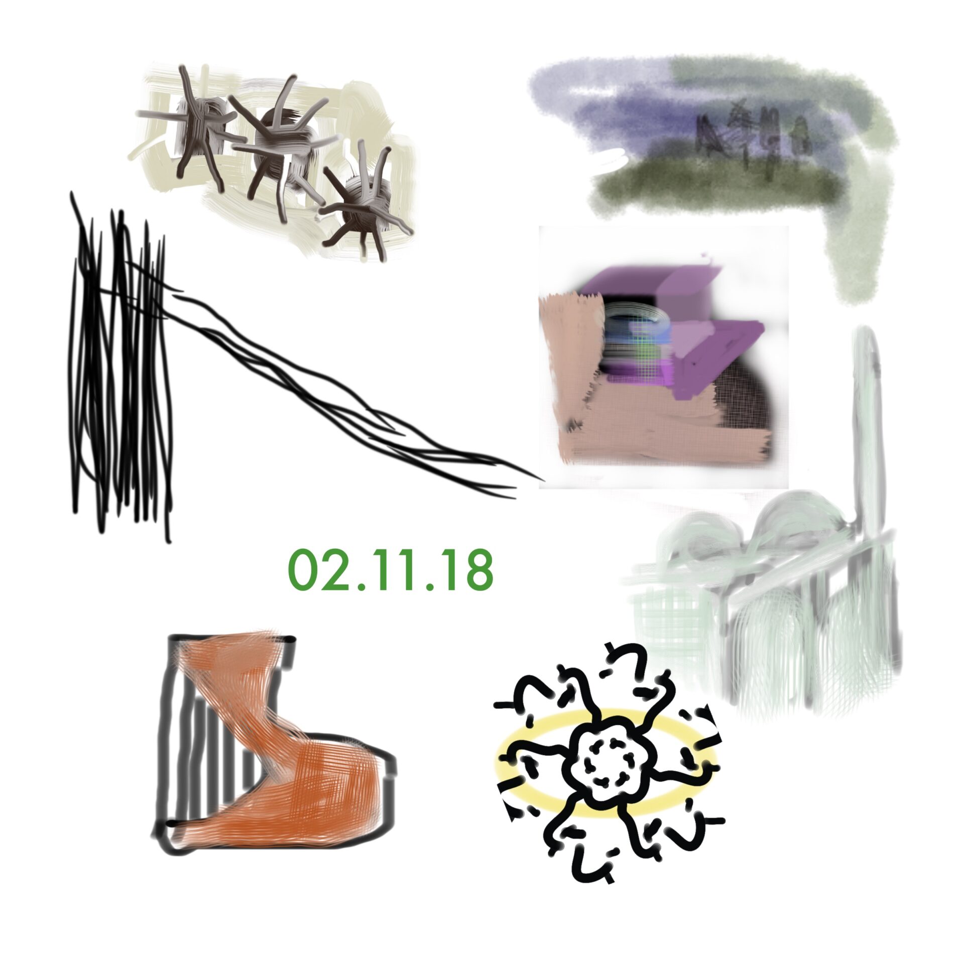 croquis gribouillages, idées du jour d’Octobre ou Novembre 2018 et notamment en route vers Sarajevo pour assister à Beyond Good And Evil lors du festival de Jazz, sur écran tactile 4 pouces avec l’application sketchbook