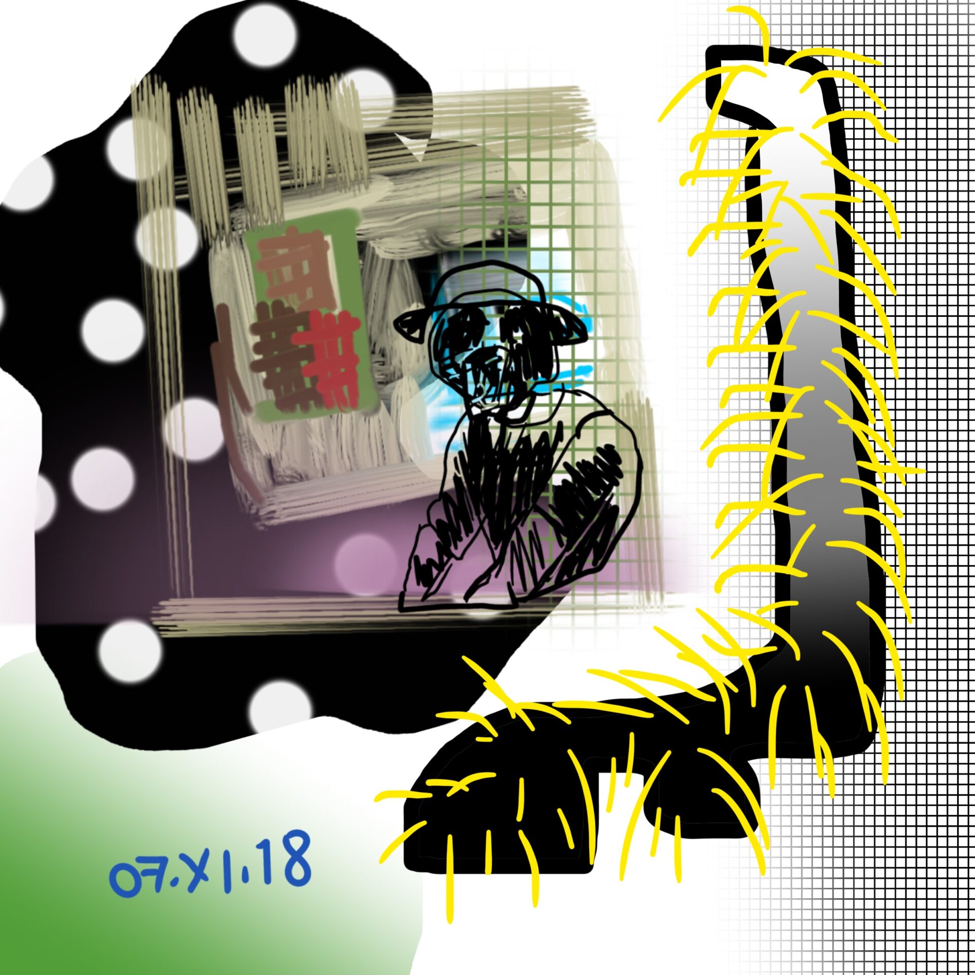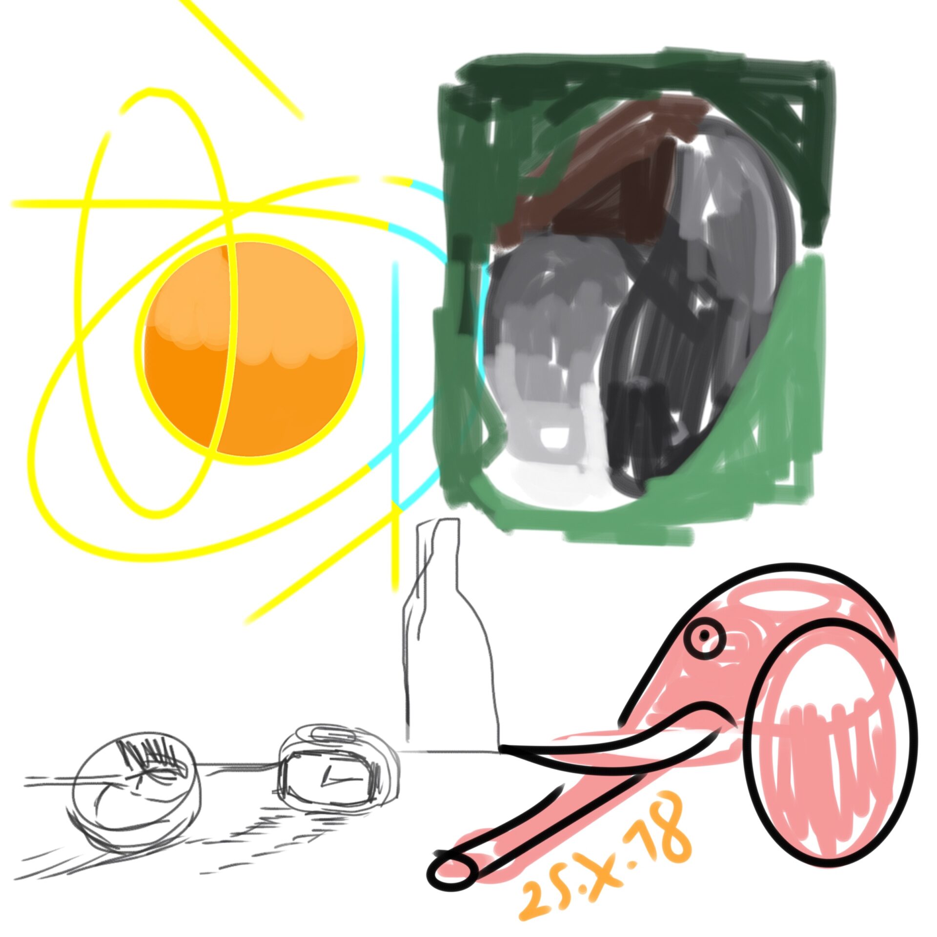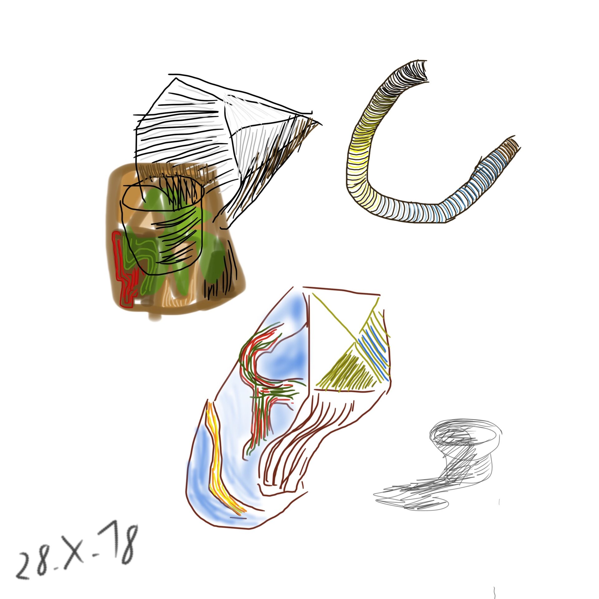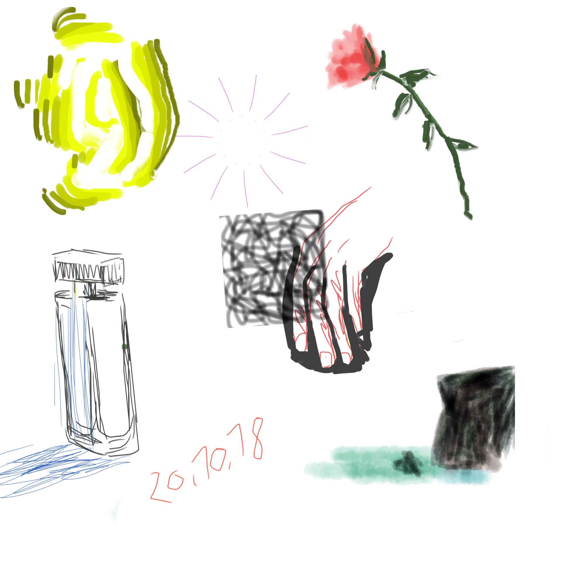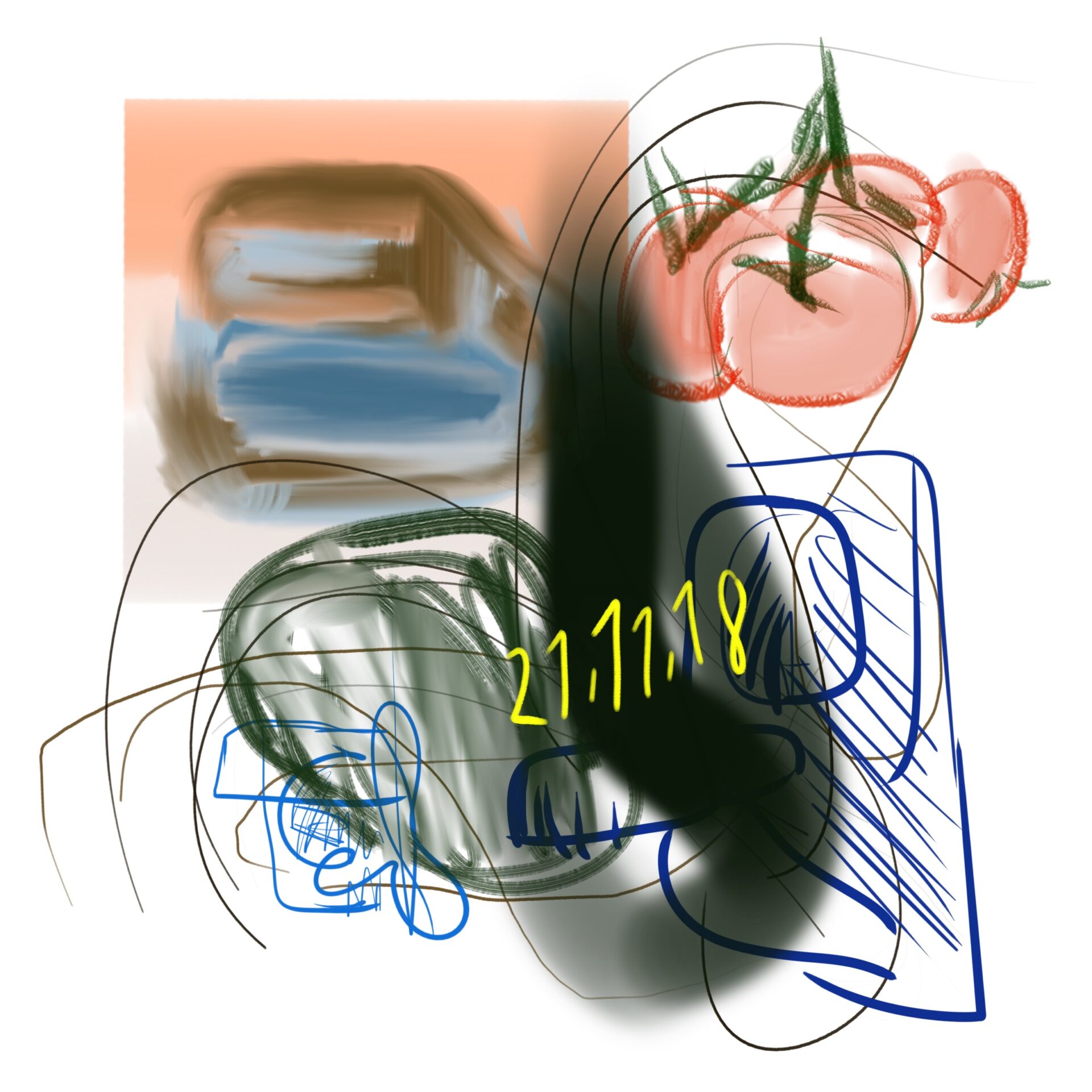 croquis gribouillages, idées du jour d’Octobre ou Novembre 2018 et notamment en route vers Sarajevo pour assister à Beyond Good And Evil lors du festival de Jazz, sur écran tactile 4 pouces avec l’application sketchbook